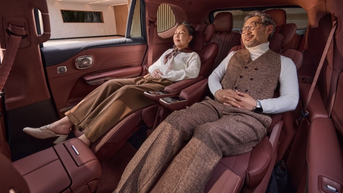 Hyptec boasts second-row double zero-gravity seats built to NASA standards, offering 12-way electric adjustment, 18-point hot stone massage function, and dual armrest screens for ultimate luxury.