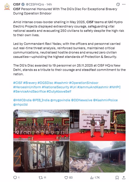 In a statement, the CISF acknowledged that officers conducted real-time threat analysis, strengthened bunkers, maintained critical communication, and neutralized the drones launched by adversaries.