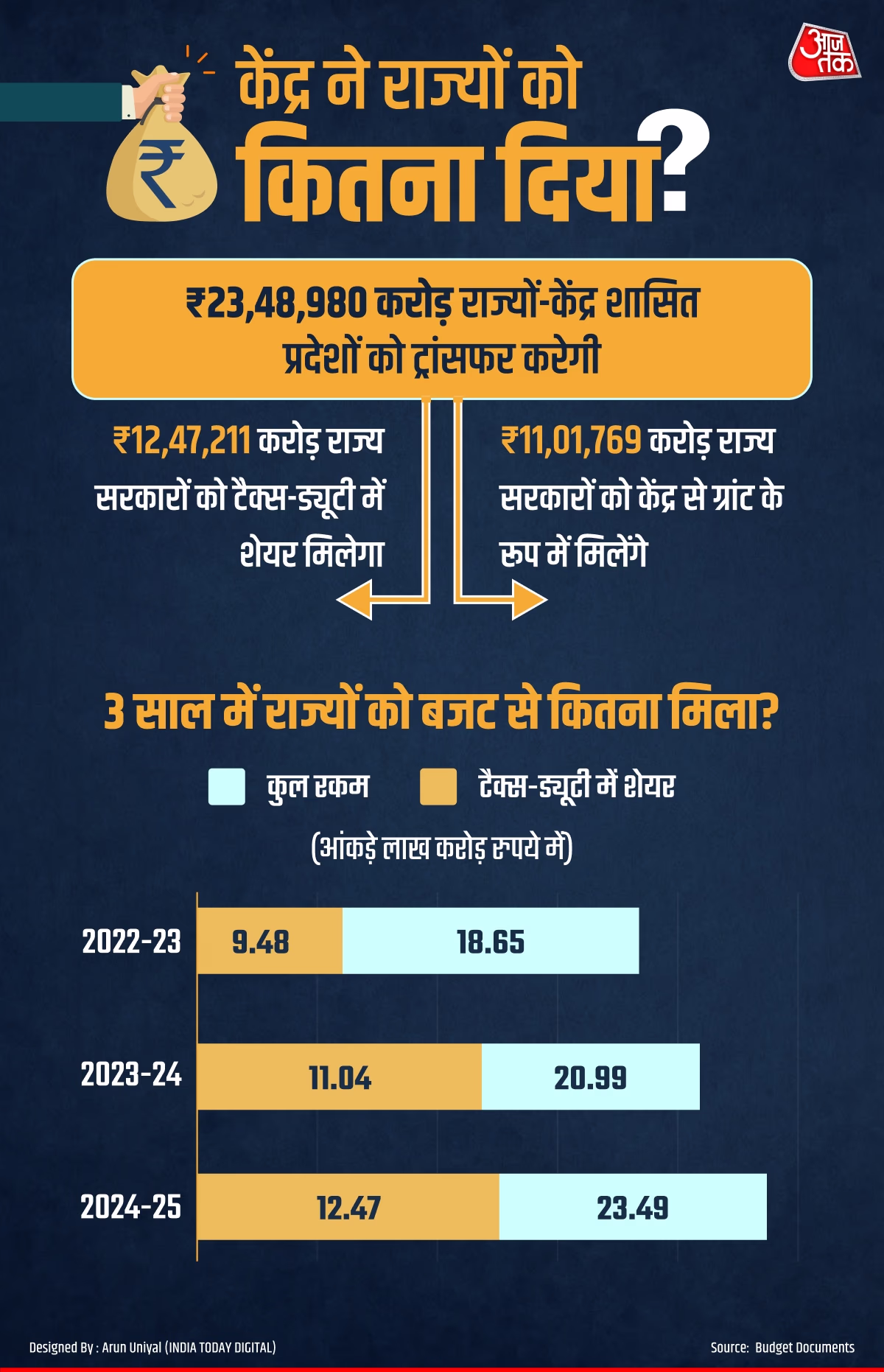 Out of this ₹23.38 lakh crore, ₹12.47 lakh crore will be distributed as states’ share in central taxes and duties, while the remaining ₹11.01 lakh crore will be given as grants.