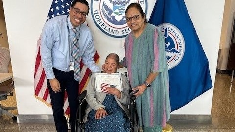 A 99-year-old Indian woman, named Daibai from Orlando, has finally been granted U.S. citizenship after a long wait.