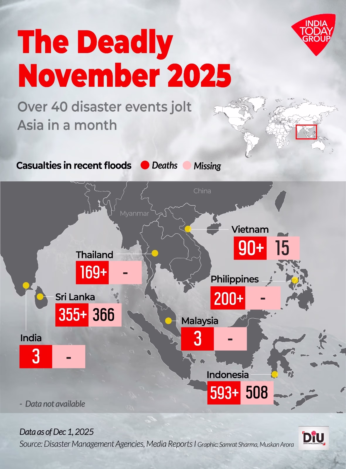 Red Alerts and ProtestsCoastal regions in India are under red alerts. Sri Lanka has declared a national emergency, calling Cyclone Ditwah its most significant disaster to date. Floodwaters in parts of Thailand have reached record levels.