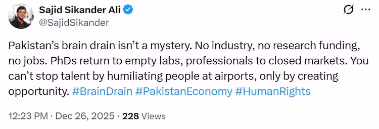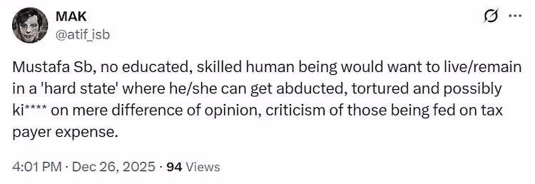Another X user, Asif, said that no educated or skilled person would want to stay in a country where dissent or criticism of the government could lead to kidnapping, torture, or even murder. It seems that alongside the shortage of skilled professionals in Pakistan, the gap between ground realities and statements from people like Asim Munir is only widening.