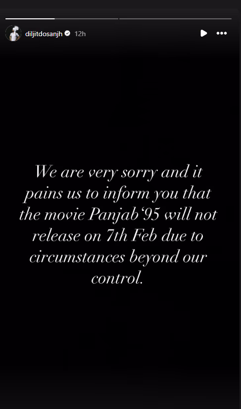 The movie 'Panjab 95' is a biographical account of the life of Punjabi human rights activist Jaswant Singh Khalra. Diljit put in considerable effort into this role, sharing glimpses of his dedication on social media. Unfortunately, this hard work won't be seen by fans on the big screen just yet. On Instagram, Diljit shared a major update about the film, writing: We apologize deeply and must inform you that 'Panjab 95' won't release on February 7 due to circumstances beyond our control.