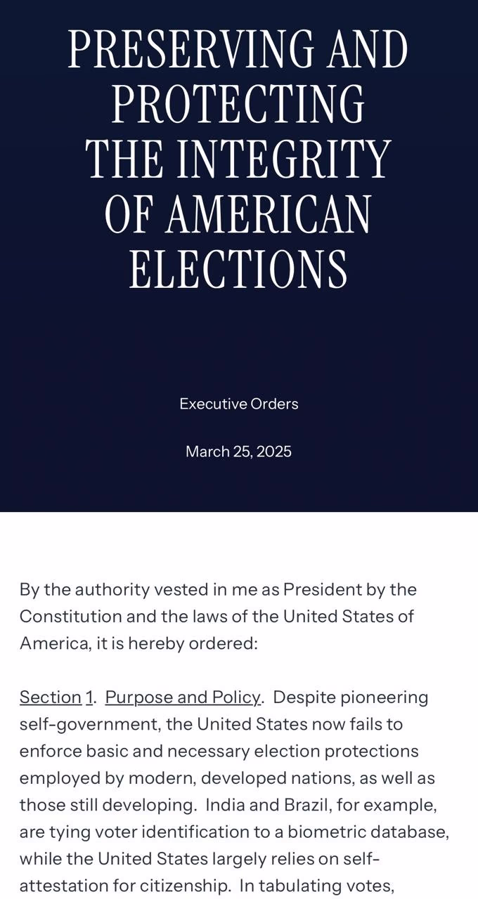 In his executive order, Trump stated that although America is a leading nation of self-governance, it has struggled to provide fundamental and necessary security in elections. For example, India and Brazil are linking voter identification with biometric databases, whereas the U.S. relies significantly on self-attestation for citizenship.