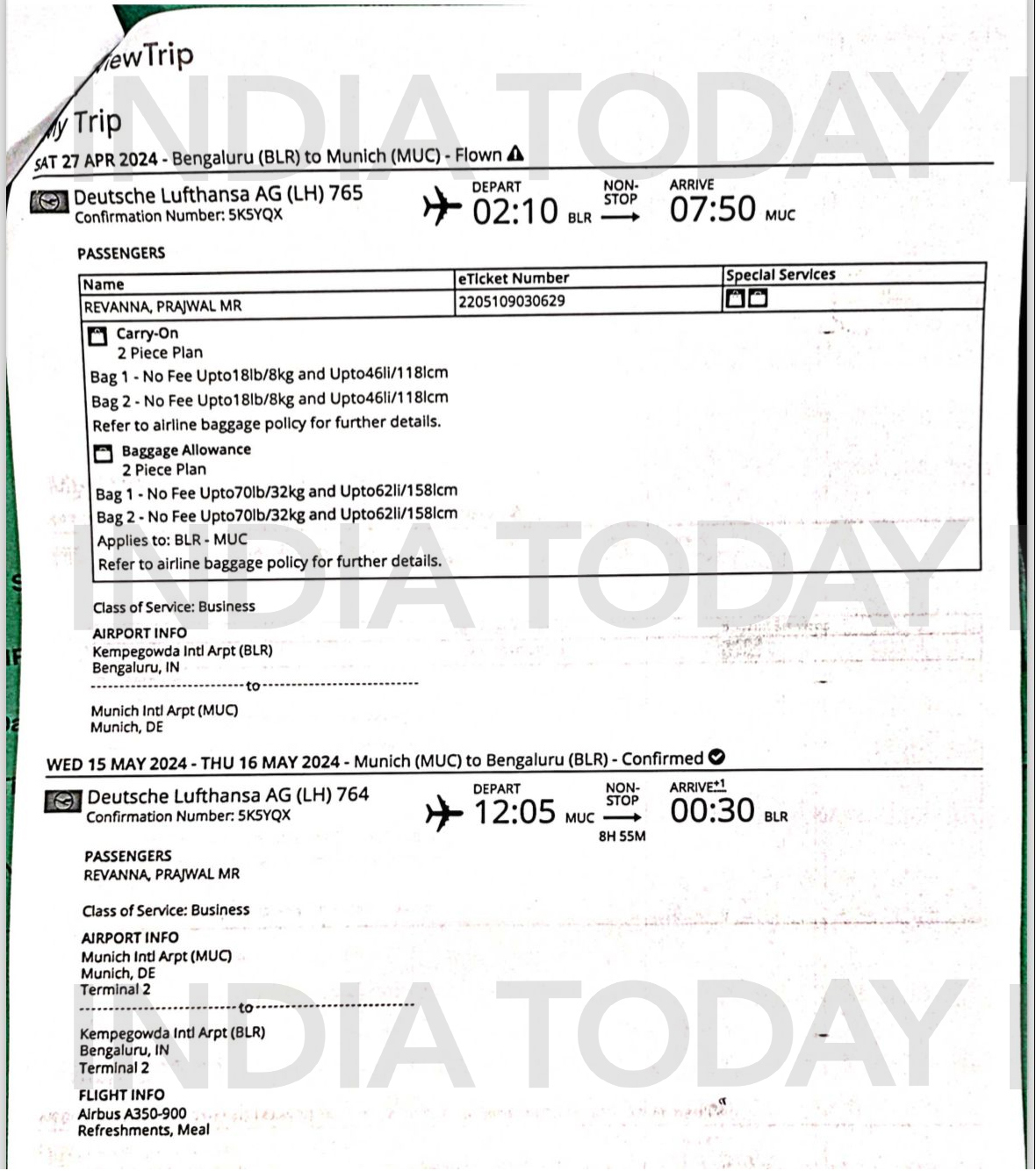 Sources suggest Prajwal Revanna plans to return to India from Germany on May 15th. 'India Today' has obtained details of his ticket revealing his flight with Lufthansa from Munich, Germany to Bengaluru, landing at 12:30 PM the next day.