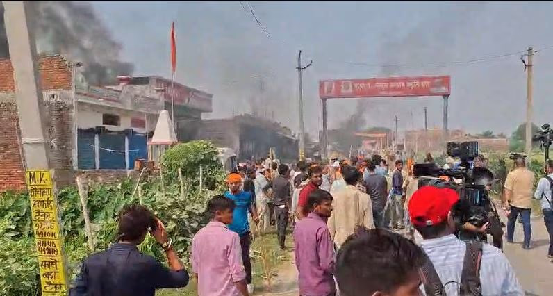 In Uttar Pradesh's Bahraich, a disturbing atmosphere prevails following the violence during the Durga idol immersion. With tensions running high, internet services in Bahraich have been suspended. During the Durga Puja procession, members from a specific community allegedly fired shots, leading to the tragic death of Ramgopal Mishra. Placing his body on the road, locals express their outrage by vandalizing shops, showrooms, homes, and hospitals, while fires were set ablaze.