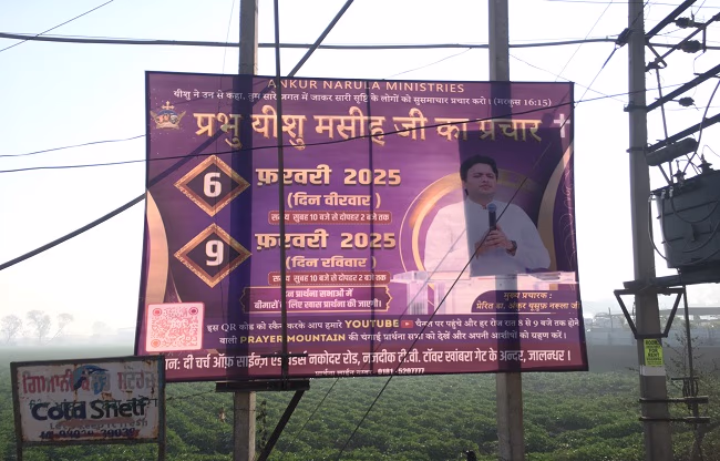 Glimpses of this dominion in Jalandhar's Khambra village are visible from afar. Posters abound, showing the pastor unfurling miracles, offering healing, or extolling the glory of Jesus.