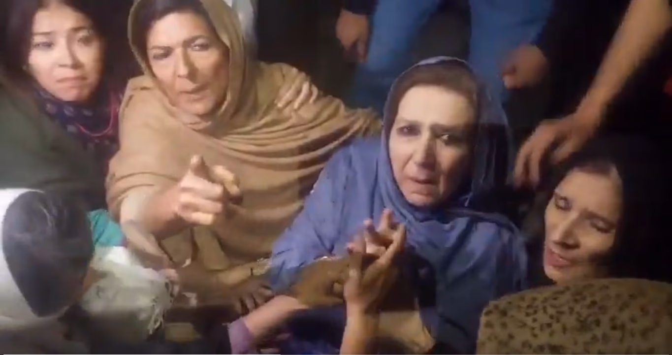 Videos from PTI's social media account show Aleema, Uzma, and other activists encircled by protesters after police handling left Najma appearing distressed. Her hands visibly trembled, while Aleema alleged that policewomen had dragged her along the ground.