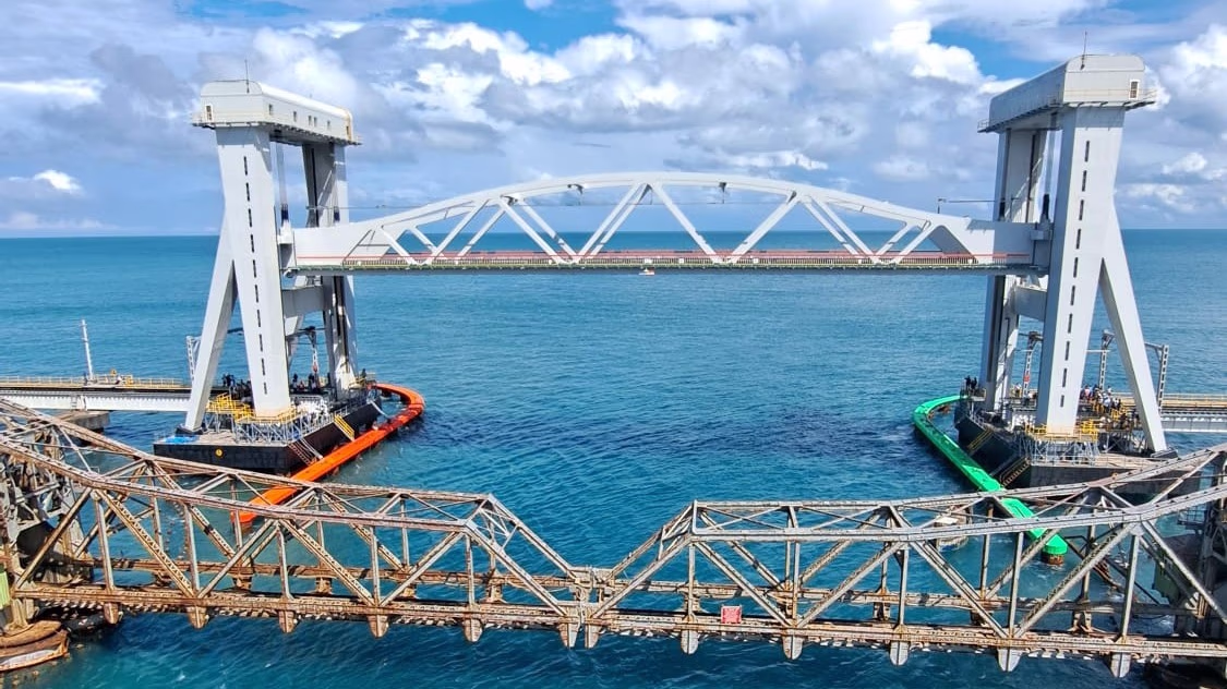 India's pioneering vertical lift Pamban Bridge is now complete and is set to be inaugurated by Prime Minister Narendra Modi on the auspicious occasion of Ram Navami on April 6. Spanning 2.08 kilometers over the majestic sea, this bridge connects the sacred Rameswaram Island with the Indian mainland. It's a dual-purpose marvel, featuring both a railway track and a vertical lift mechanism that allows for train transit on top while accommodating large ships sailing beneath.