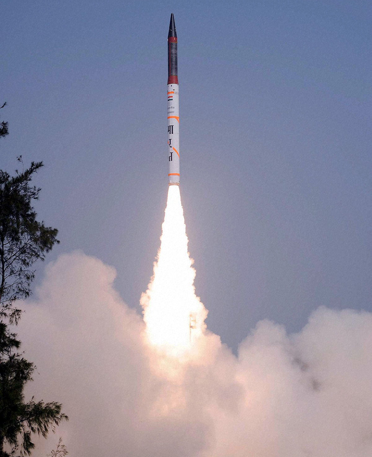 The Agni-4 has an active range of 3,500 to 4,000 km and can soar up to 900 km in height, hinting at its potential application for space warfare in the future. With a highly reliable avionics system, it can be digitally steered towards the enemy with impressive accuracy and carries up to a one-ton payload.