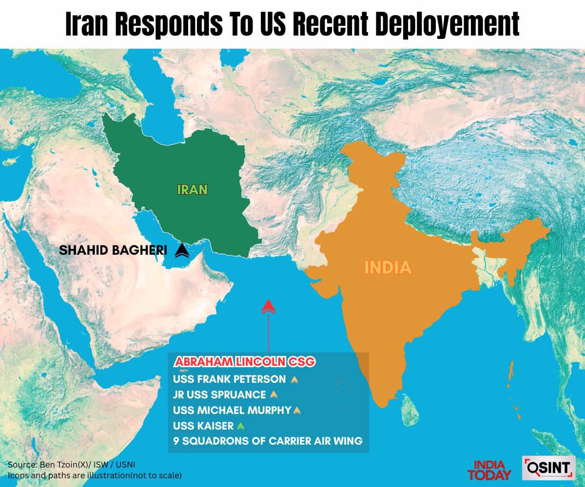 The USS Abraham Lincoln Carrier Strike Group is stationed in the Arabian Sea, representing the US's formidable might, comprising destroyers, fighter jets, and cruise missiles. The US has significantly increased its military clout in the Middle East, pressurizing Iran. The Trump administration's firm stand against Iran's nuclear ambitions and unrest is evident.