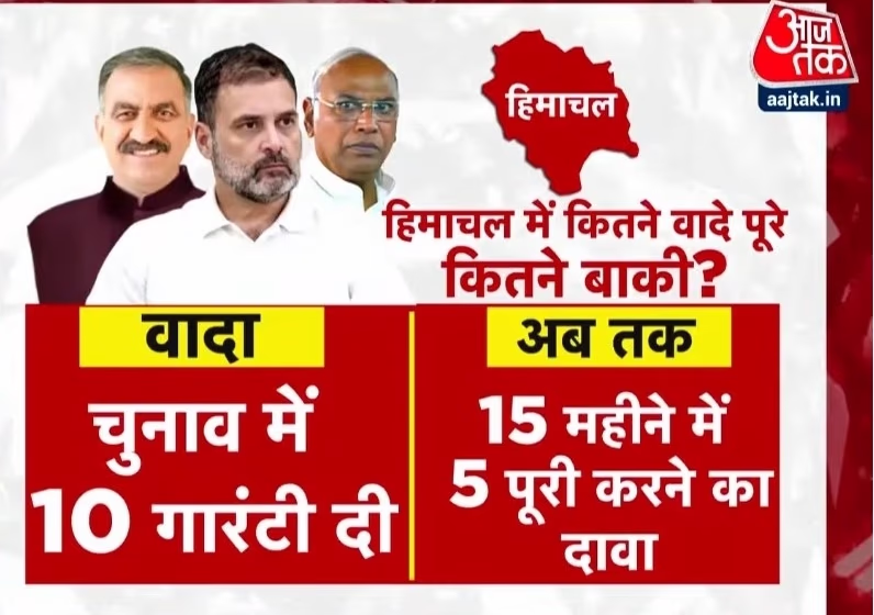 Looking into the promises in Himachal Pradesh, Congress vowed ten guarantees during the 2022 elections. The government claims five guarantees have been accomplished in 15 months. The reinstatement of the Old Pension Scheme (OPS) was announced immediately after coming into power, yet nearly 9,500 employees remain outside its scope. BJP adds that arranging an annual 1,000 crore rupees for OPS has delayed salaries for employees.