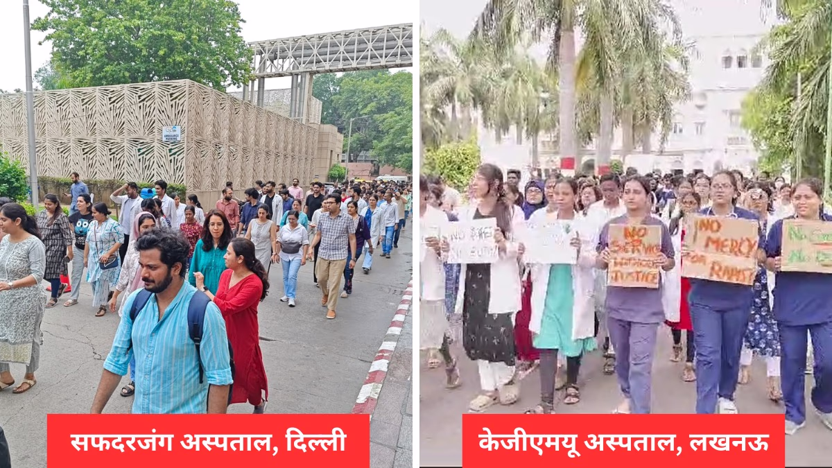 In response to the murder of a trainee doctor in Kolkata, resident doctors are staging a nationwide strike. The Federation of All India Resident Doctors Association (FORDA) has called for all Resident Doctor Associations (RDA) in government hospitals to join the strike. Doctors from RML Hospital and Safdarjung Hospital in Delhi are protesting on the streets, while doctors in Lucknow’s KGMU Hospital are also demonstrating with banners and posters.