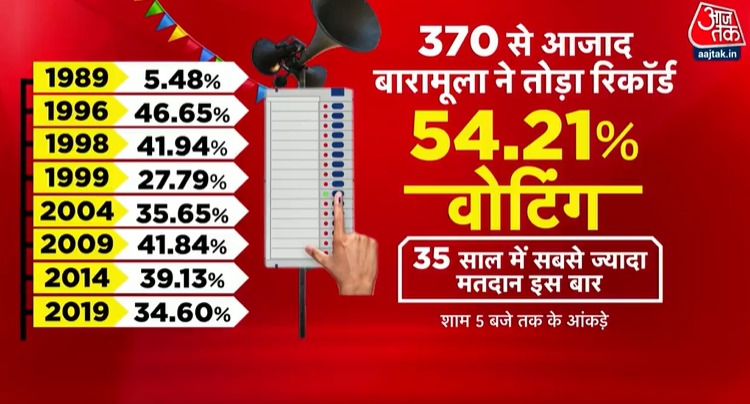 Within the first hundred days of winning the 2019 elections, Modi's government liberated Kashmir from the ages-old chains of Article 370. Following this, Baramulla Lok Sabha observed over 54.21 percent voting by 5 PM, breaking a 35-year record.