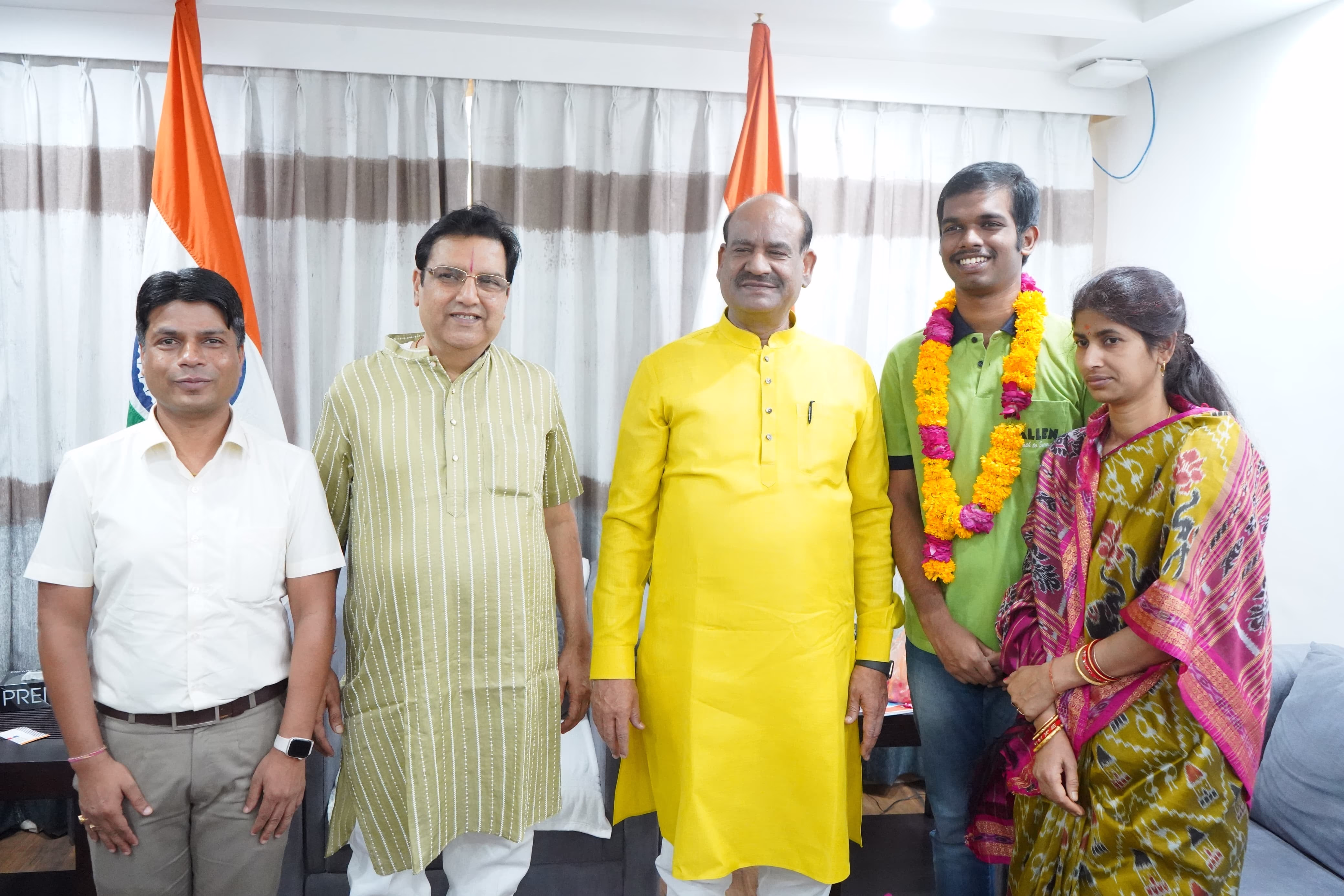 At the camp office located in Shakti Nagar, Omprakash Behera, alongside his mother Smita Rani and Allen's Director Rajesh Maheshwari, met Lok Sabha Speaker Om Birla. Birla engaged in conversation with Omprakash, inquiring about his experiences in Kota. He remarked that achievement comes through hard work and discipline, urging him to maintain this disciplined diligence throughout life. Kota’s educational culture motivates students, providing constant inspiration to advance forward.