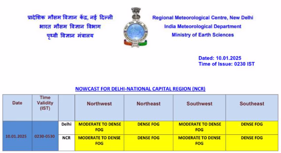 This morning, January 10th, the capital of the country, Delhi, was completely enveloped in fog. The fog is so thick, everything is lost within it. Visibility has dropped to zero meters. People stepping out of their homes are facing difficulties. The speed of vehicles has slowed to a crawl, making it challenging to drive above 20 km/h. Drivers are relying on emergency lights, and even trees standing alongside the road are out of sight. Delhi is under the grip of dense to very dense fog, prompting the IMD to issue an orange alert.