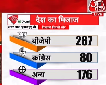The survey asked about the seats each party might secure if Lok Sabha elections happened today. It projected 287 seats for BJP, 80 seats for Congress, and 176 seats for others. In the 2024 Lok Sabha elections, BJP won 240 seats, and Congress secured 99 seats. The August survey estimated 260 seats for BJP and 97 seats for Congress.