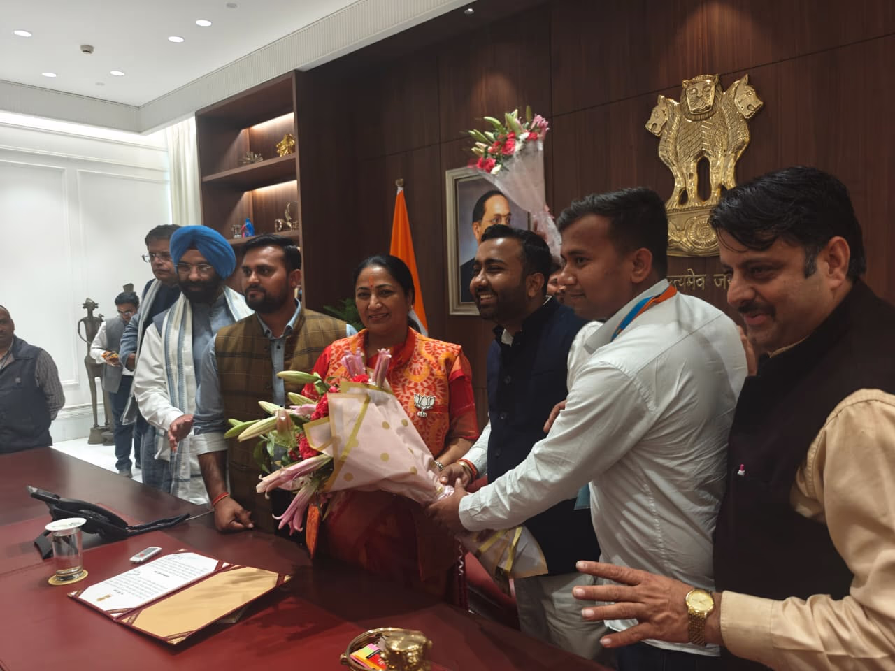 Rekha Gupta arrived at the Delhi Secretariat at three this afternoon and assumed her responsibilities. She plans to tour the Vasudev Ghat at Yamuna Bazaar by five in the evening, and by seven PM, she will conduct the first Cabinet meeting in the Delhi Secretariat.