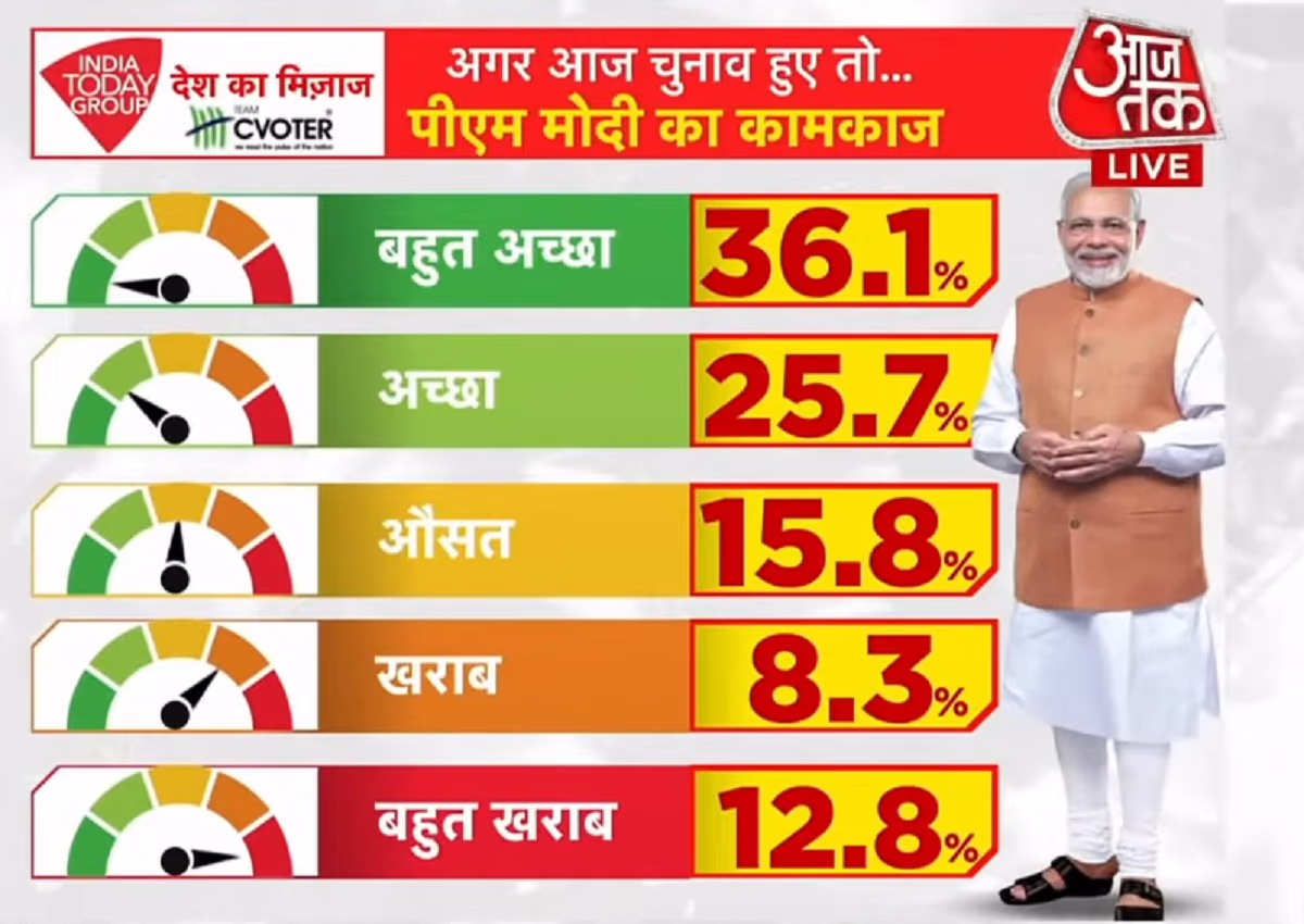 How has PM Modi’s administration performed? The response indicates 36.1% evaluating it as very good, with 12.8% opining it to be very bad.