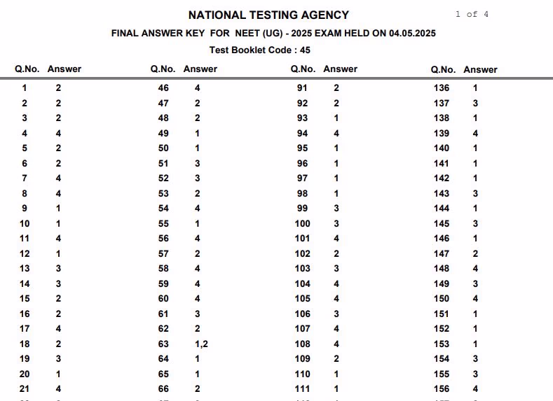 NEET UG Result 2025: The National Testing Agency (NTA) unveiled the final answer key for NEET UG 2025 on June 14, 2025. This pivotal document can be downloaded from the official NEET website -
