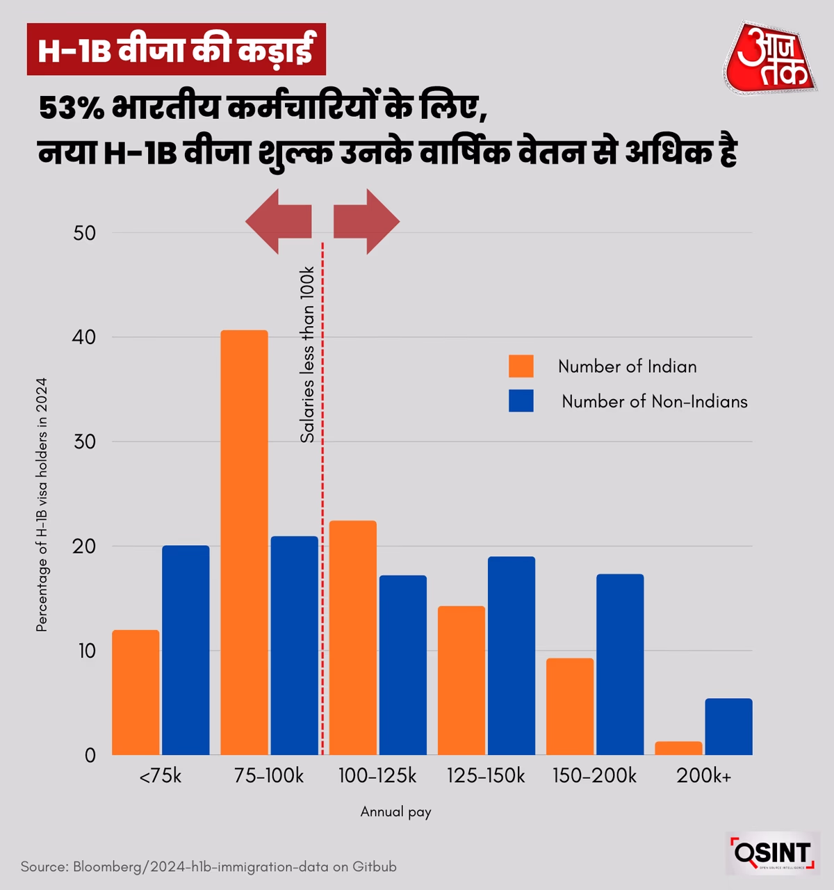To understand the impact on Indian H-1B visa holders, India Today analyzed Bloomberg's open data on 2024's H-1B applications. This data, collected during investigations of Indian overseas employment agencies, contained agency records and employment contracts before being released as open data.