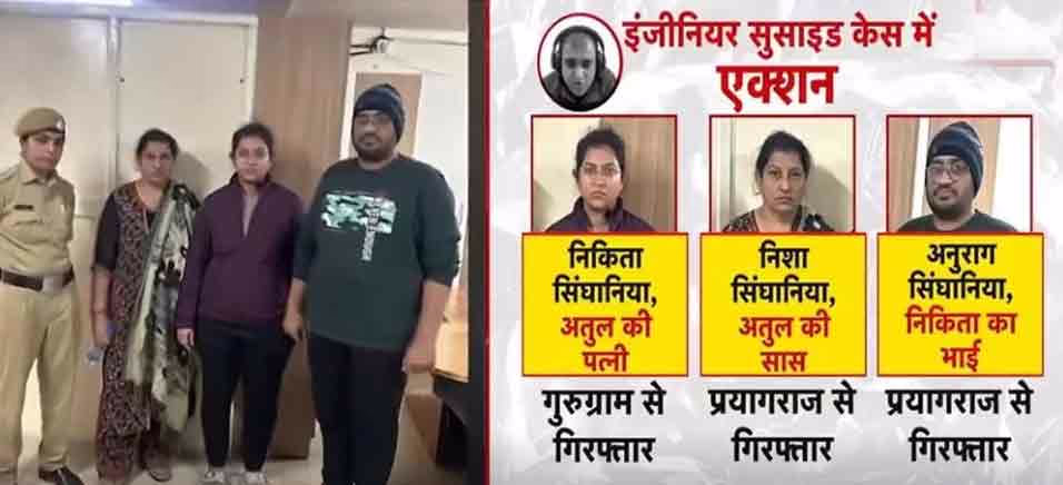On Saturday, Bengaluru police arrested Nikita, her mother, and brother from Gurugram and Prayagraj. After appearing in the local court, they were placed under judicial custody for 14 days. The 34-year-old Atul Subhash was found hanging in his home in Munnekolalu, Southeast Bengaluru, on December 9th. Prior to his death, he authored a 40-page suicide note and recorded a video.