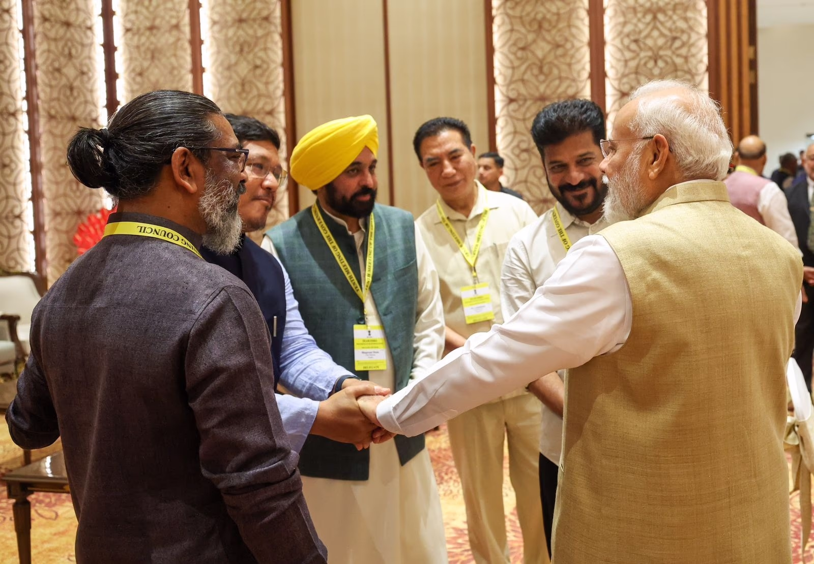 During this momentous meeting, Prime Minister Modi interacted with Chief Ministers including Jharkhand's Hemant Soren, Punjab's Bhagwant Mann, Telangana's Revanth Reddy, and Meghalaya's Conrad Sangma, along with Tamil Nadu's CM MK Stalin and Andhra Pradesh's CM Chandrababu Naidu. The camaraderie was evident in the captured moments.