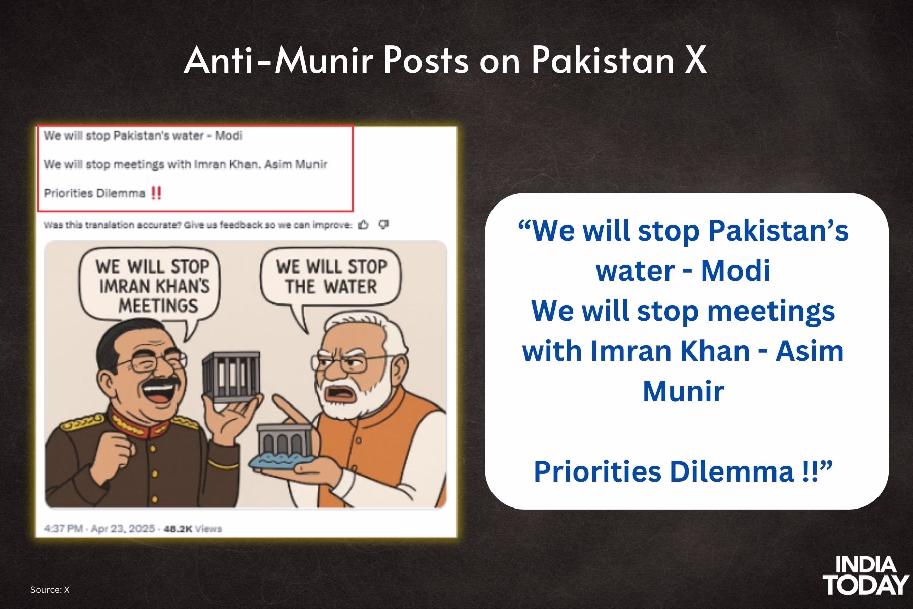 To many Pakistanis, Asim Munir now represents not only military overreach but also authoritarian rule and political vendetta. As criticism against Munir intensified, pro-military accounts fought back against this online protest and attempted to label opponents as pro-India. Over 9,000 posts were made on one hashtag within 24 hours.