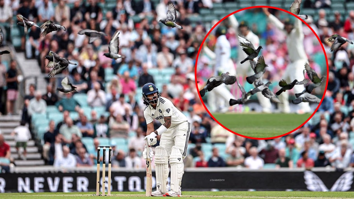 'The Oval' stadium is located in South London, where, during India's batting, flocks of pigeons repeatedly approached the pitch. An instance arose when Indian batsman Sai Sudharsan was on strike as an English bowler delivered the ball, narrowly missing a pigeon. Similarly, KL Rahul experienced a similar situation while batting.