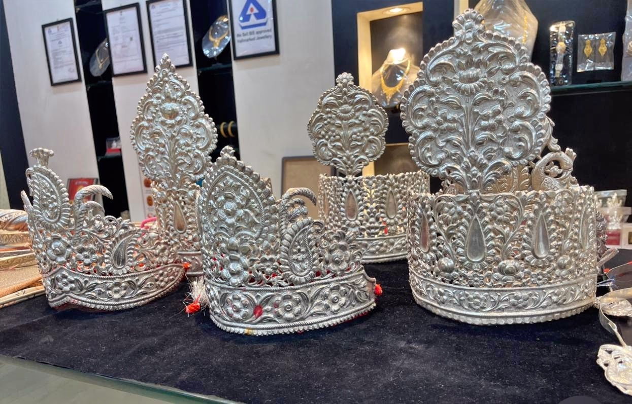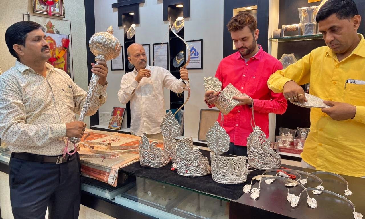 decades ago, creating silver crowns, earrings, Ram's clogs, and jewelry for all characters, beginning an enduring tradition. Now, these ornaments and weapons are treasures for those performing the Ramlila.