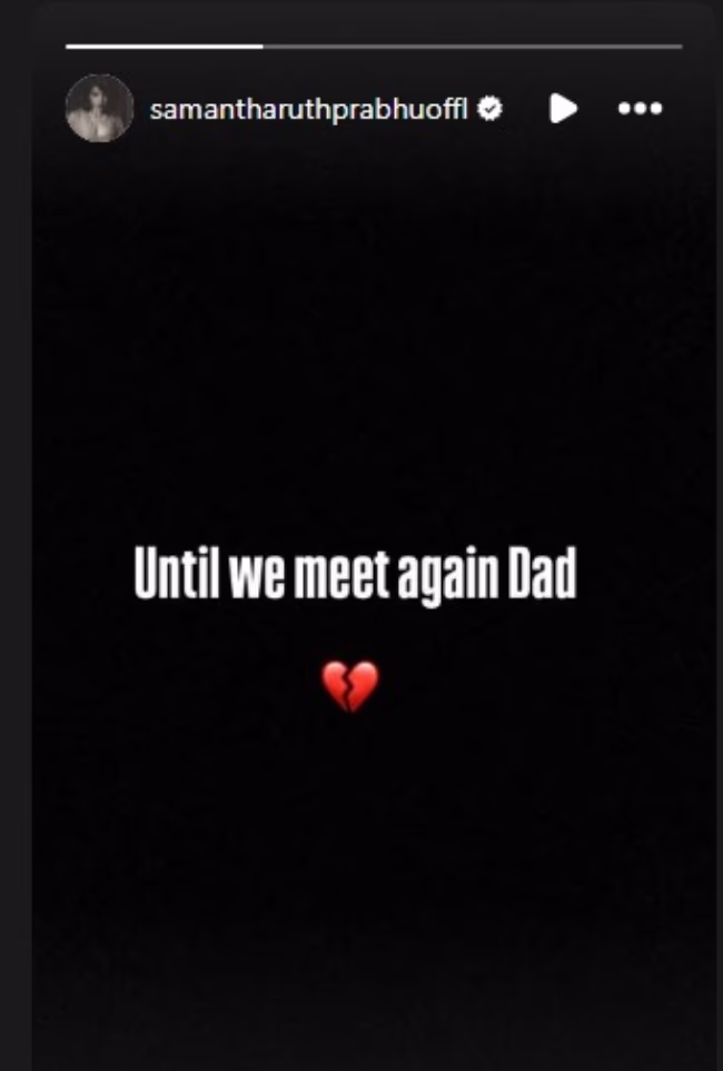 Renowned South Indian and Bollywood actress Samantha Ruth Prabhu has shared the heartbreaking news of her father's passing. In an emotional post on social media, Samantha added a broken heart emoji, conveying her deep sorrow during this challenging time. This tragedy strikes as Samantha bravely battles the severe autoimmune disease, Myositis, a fight she's been waging for years. Furthermore, her divorce from actor Naga Chaitanya a few years back was another significant ordeal she overcame with resilience. In these trying times, the unexpected loss of her father adds to her grief.