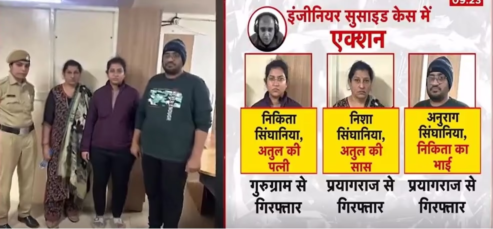 In a dramatic turn of events, Bengaluru police have arrested Nikita Singhaniya, who was living separately from her husband Atul Subhash, her mother, Nisha, and brother, Anurag, in connection with inciting his suicide. Nikita was arrested from Gurugram, while her mother and brother were detained in Prayagraj. Atul had previously accused them of harassment and extortion, which led him to take this extreme step. All the accused have been presented in court and are currently under judicial custody.