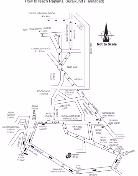 For those traveling by buses, transportation is available from ISBT, Shivaji Stadium, Gurgaon, Faridabad, and Surajkund. The venue is well-connected by road with Delhi, Gurgaon, and Faridabad, reachable by private or rental vehicles. Visitors can also choose to travel by metro or rail, followed by a cab ride.