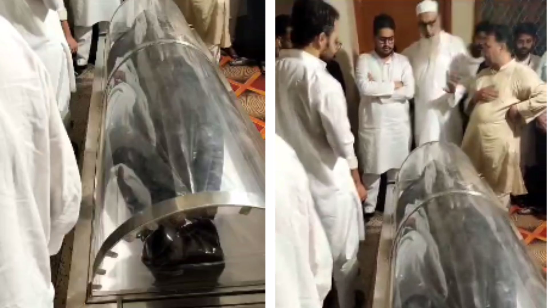 Mukhtar Ansari was laid to rest next to his mother's grave. Before the burial prayer, his body was placed inside his home within a glass chamber for the public to pay their last respects.