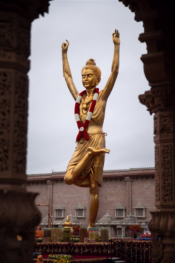 Thus, as travelers pass by Akshardham, their gaze upon the towering statue sees the embodiment of Swaminarayan, a figure immortalized as Neelkanth Varni.