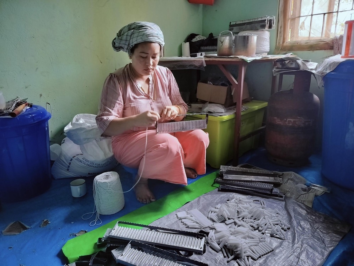Some women, skilled artisans, are weaving hope on donated handlooms. Their lives interweave like the threads, tirelessly working hours in stifling heat, to earn a meager return. After two days of toil, they often earn only $1.50, a small profit for their hard work.