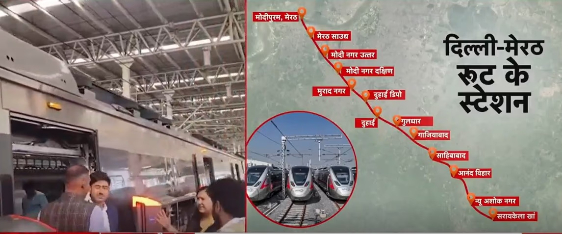 The Namo Bharat train is set to operate from New Ashok Nagar to Meerut South station. The five-kilometer stretch from New Ashok Nagar to Sarai Kale Khan is completed, as is the structure from Meerut South to Modipuram. PM Modi will inaugurate both these sections today.