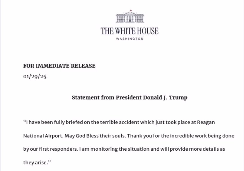 President Donald Trump has been briefed about the incident. According to a White House statement, President Trump expressed his condolences over the dreadful event at Reagan National Airport, praying for the souls of the departed as he continues to monitor the situation closely.
