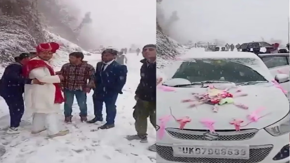 A video from the Tehri Garhwal district in Uttarakhand is captivating viewers, capturing a wedding procession forging ahead on snow-laden roads. Surrounded by dense snowfalls and icy paths, amid chilling weather, the groom continues for miles with the wedding party, undeterred.