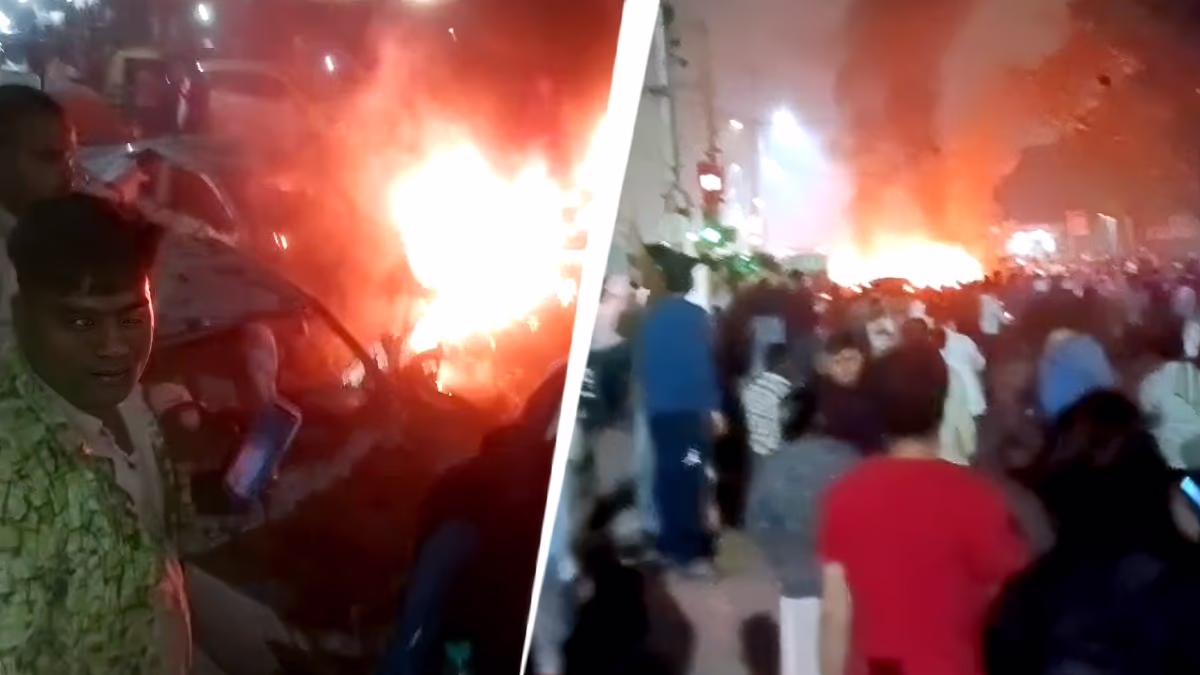Videos from the aftermath show people screaming, capturing the scene on their devices. The car, engulfed in flames, affected others nearby, with reports of injuries. Several vehicles suffered damage, with smoke billowing heavily across the street.
