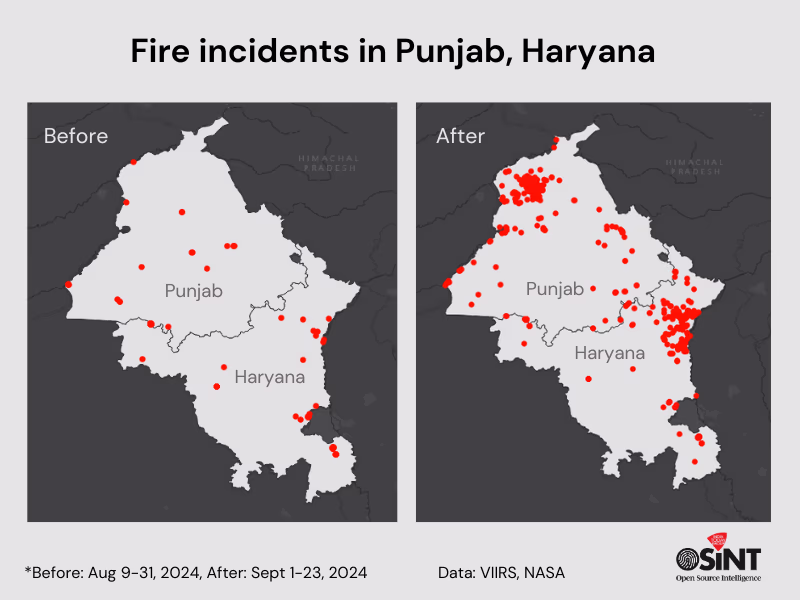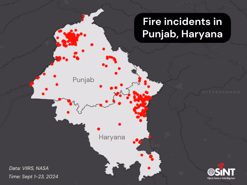 Data captured by NASA's VIIRS satellite sensor indicates that stubble burning incidents are concentrated near Amritsar in Punjab and Kurukshetra and Karnal in Haryana. According to VIIRS data, the last seven days have seen a spike in stubble burning activities. The Kharif harvesting season in Punjab officially starts on September 15 and continues until November 30.