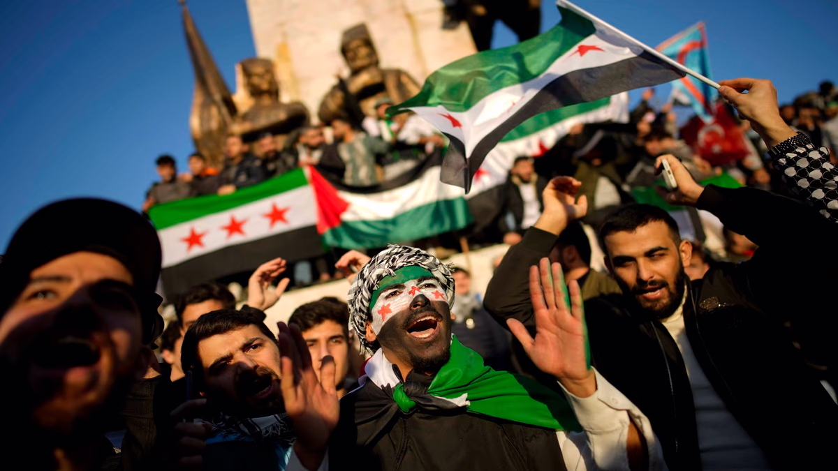 This image depicts Syrians near the Syrian-Lebanese border in the town of Bar Elias, celebrating the downing of Bashar Assad’s government. (Photo - AP)