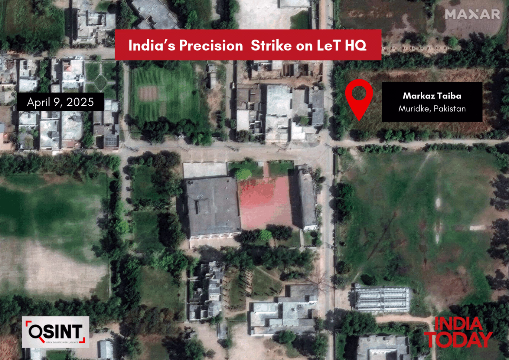 Air Marshal AK Bharti displayed images of India’s attack on Muridke terror camp, showcasing the damage from Indian missile strikes. Muridke, a Lashkar-e-Taiba stronghold, sits 33 kilometers from Lahore along the Grand Trunk road, housing the group's headquarters known as Markaz-e-Taiba.