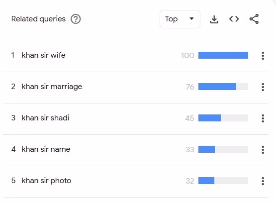 It's not just social media; the buzz extends to Google as well. Let's explore what people are searching about Khan Sir. The burning question on many minds is: Who did Khan Sir marry? Many are also eager to see a picture of Khan Sir's wife. Here's a look at the most-searched questions about Khan Sir on Google right now.