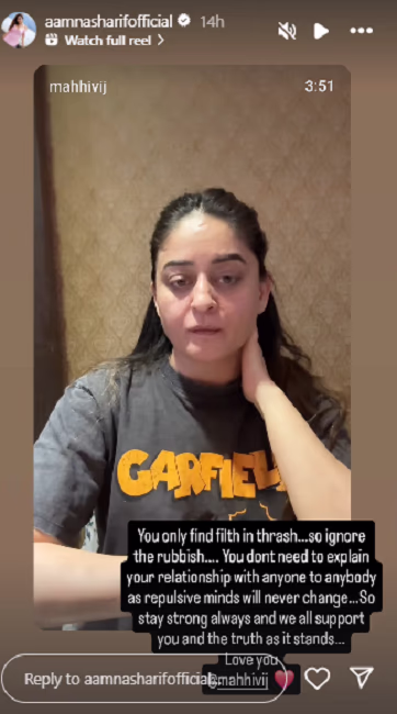 Actress Mahhi Vij was heavily trolled for uploading photos with Salman Khan's best friend, Nadeem Nadz, accompanied by a heartfelt caption. Social media users linked this act to her ongoing divorce with husband Jay Bhanushali, sparking widespread uproar. In response, Mahhi expressed her anger at the situation. Now, TV actress Aamna Sharif has stepped up in support of Mahhi.