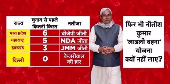 In contrast, Kejriwal in Delhi failed to secure women's votes due to an absence of deliverable promises, raising questions about why Nitish Kumar's government has not proposed a Ladli Behen-like plan?