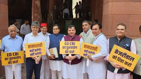 Thursday witnessed a vigorous protest by the Aam Aadmi Party (AAP) MPs outside Parliament against the arrest of Delhi Chief Minister Arvind Kejriwal by the CBI, denouncing the misuse of investigative agencies. The MPs also boycotted the President's address, stating, 'While we hold the utmost respect for the President, the address is scripted by the government, hence our absence.'
