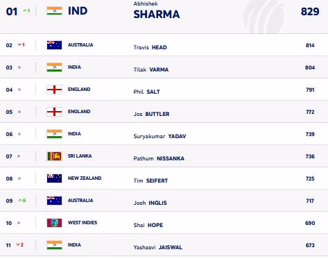 Suryakumar Yadav initially secured the No. 1 ranking, prior to Abhishek, while Virat Kohli set the precedent as India's first male player to maintain the top T20I ranking from 2014 to 2017.