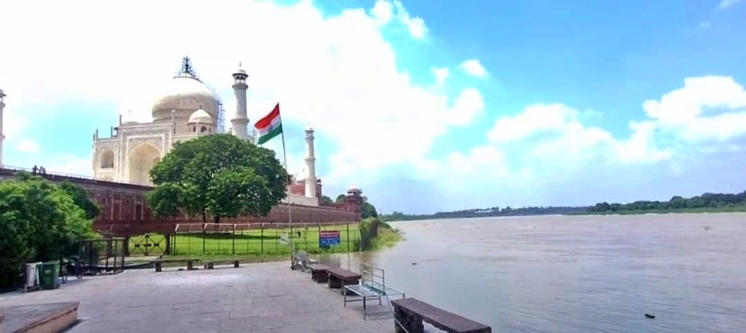In Uttar Pradesh's Agra, the water level of the Yamuna River is rapidly rising, casting a flood threat over the iconic Taj Mahal. Continuous heavy rain in Delhi and Haryana has caused water to be released from the Hathinikund Barrage, leaving the Yamuna swelling. This has resulted in the river reaching the walls behind the Taj Mahal, a phenomenon not seen in the past 45 years.