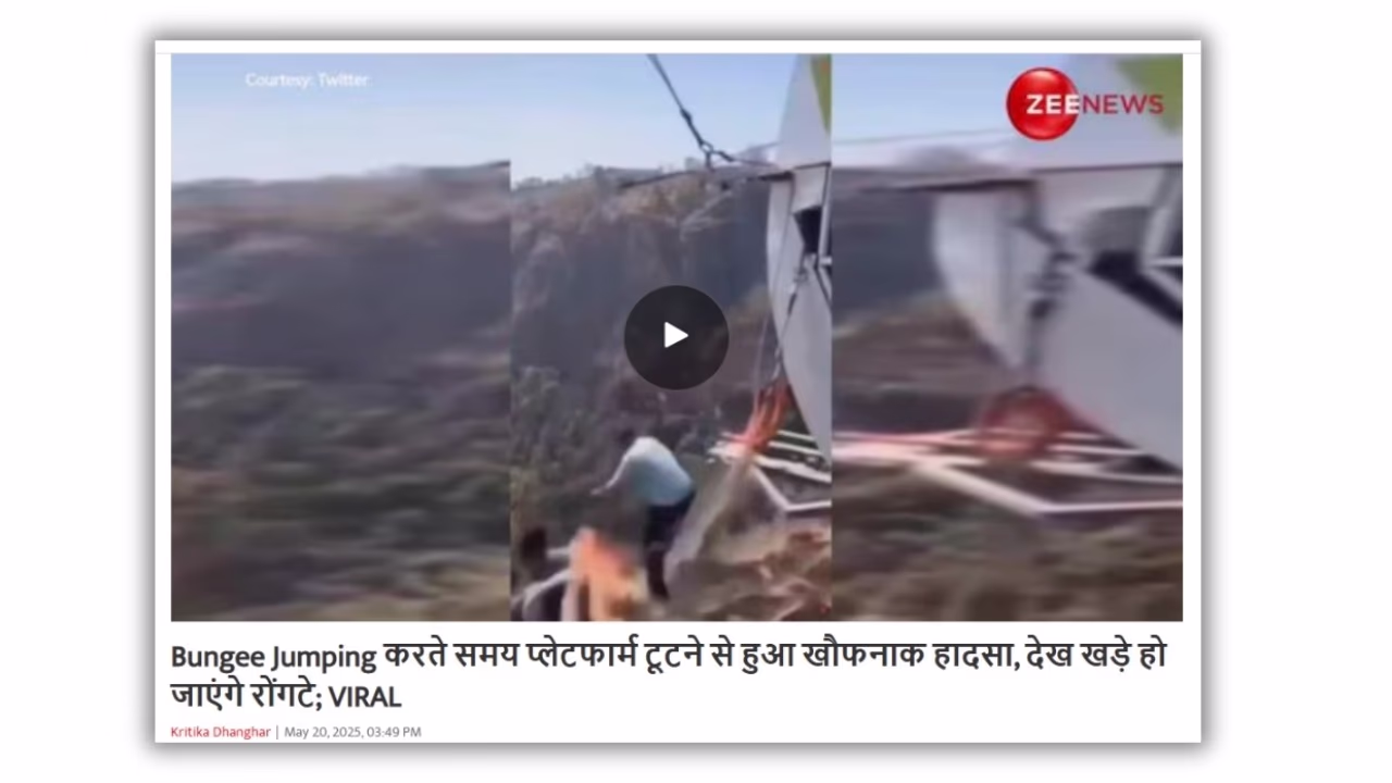 A terrifying video purportedly showing a bungee jumping accident is currently going viral on social media. Several individuals are claiming that this incident recently occurred in Rishikesh, Uttarakhand.